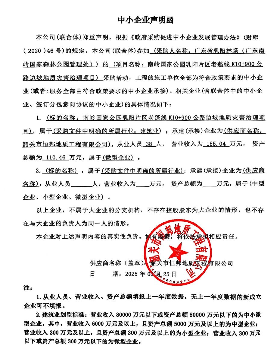 南岭国家公园乳阳片区老蓬线K10+900公路边坡地质灾害治理项目 |